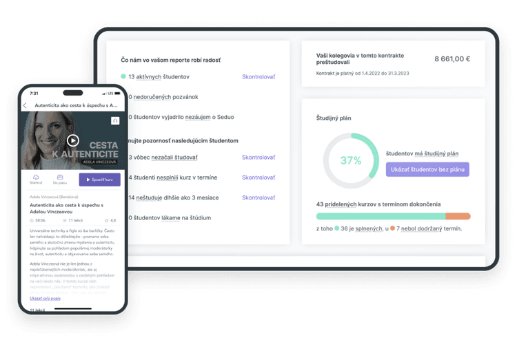 za 25 zamestnancovVďaka tomu budete mať iba jednu platformu na vzdelávanie zamestnancov, a to s využitím všetkých dostupných funkcionalít. Podporujeme rôzne formáty obsahu (videá, PDF, DOC, PPT, ako aj celé webové stránky). Licenciu pre vlastný obsah je možné kúpiť samostatne alebo ako doplnok k štandardnej firemnej licencii.